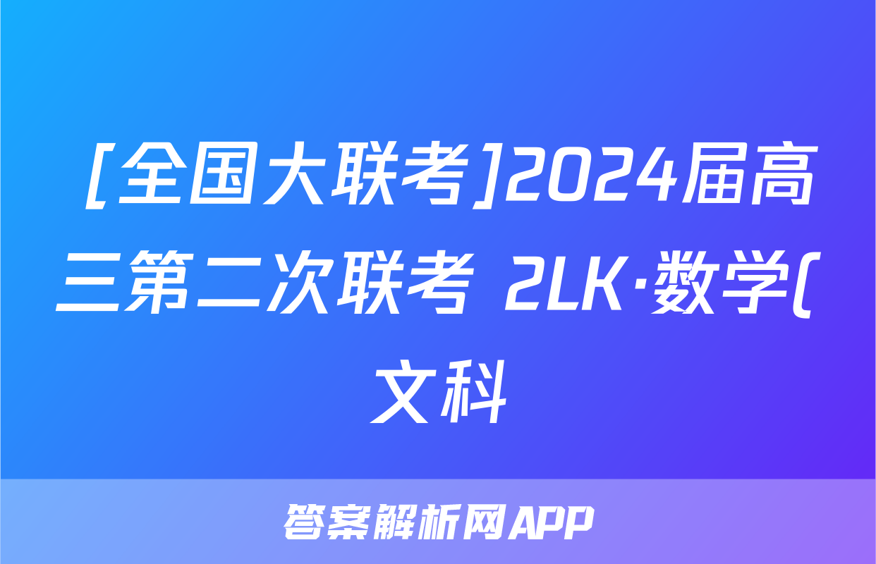 [全国大联考]2024届高三第二次联考 2LK·数学(文科)-QG 文科数学答案正在持续更新,目前2024-2025衡中同卷答案网为大家整理了相关试题及答案,供大家查缺补漏,高效提升成绩。