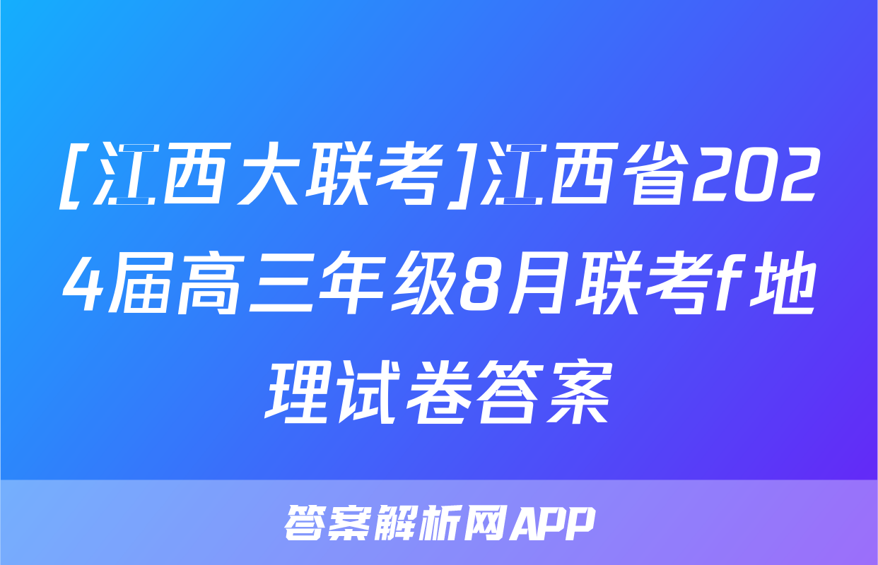 [江西大联考]江西省2024届高三年级8月联考f地理试卷答案
