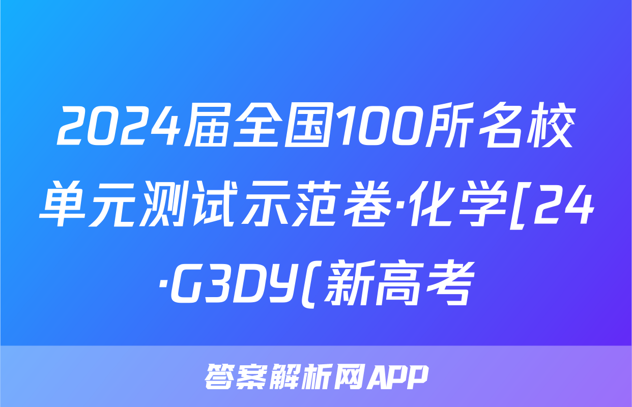 2024届全国100所名校单元测试示范卷·化学[24·G3DY(新高考)·化学-SJB-必考-QG]二试题正在持续更新,目前2024-2025衡中同卷答案网为大家整理了相关试题及答案,供大家查缺补漏,高效提升成绩。