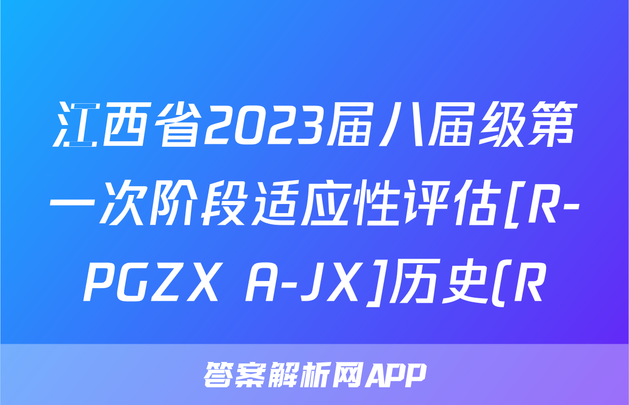 江西省2023届八届级第一次阶段适应性评估[R-PGZX A-JX]历史(R)答案正在持续更新,目前2024-2025衡中同卷答案网为大家整理了相关试题及答案,供大家查缺补漏,高效提升成绩。