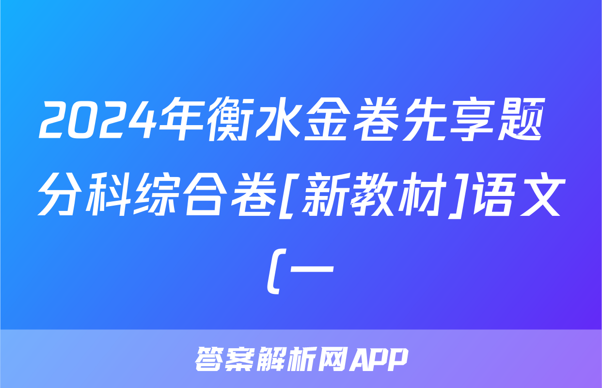 2024年衡水金卷先享题 分科综合卷[新教材]语文(一)1答案正在持续更新,目前2024-2025衡中同卷答案网为大家整理了相关试题及答案,供大家查缺补漏,高效提升成绩。