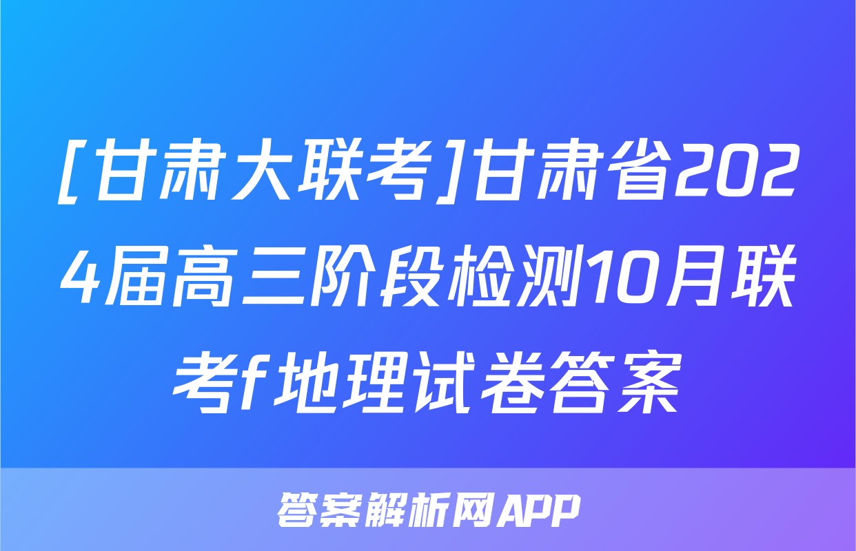 [甘肃大联考]甘肃省2024届高三阶段检测10月联考f地理试卷答案正在持续更新,目前2024-2025衡中同卷答案网为大家整理了相关试题及答案,供大家查缺补漏,高效提升成绩。
