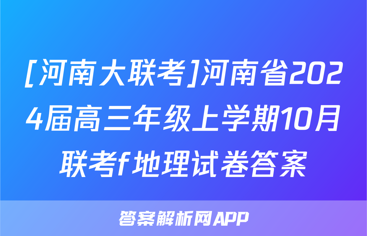 [河南大联考]河南省2024届高三年级上学期10月联考f地理试卷答案正在持续更新,目前2024-2025衡中同卷答案网为大家整理了相关试题及答案,供大家查缺补漏,高效提升成绩。
