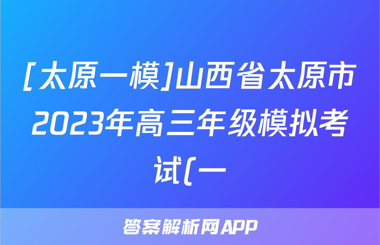 [太原一模]山西省太原市2023年高三年级模拟考试(一)语文答案正在持续更新,目前2024-2025衡中同卷答案网为大家整理了相关试题及答案,供大家查缺补漏,高效提升成绩。