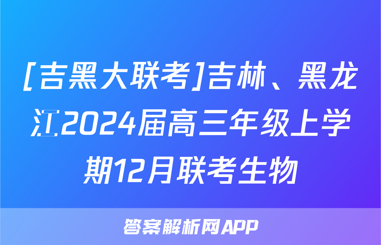 [吉黑大联考]吉林、黑龙江2024届高三年级上学期12月联考生物正在持续更新,目前2024-2025衡中同卷答案网为大家整理了相关试题及答案,供大家查缺补漏,高效提升成绩。