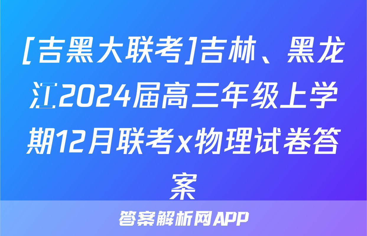 [吉黑大联考]吉林、黑龙江2024届高三年级上学期12月联考x物理试卷答案正在持续更新,目前2024-2025衡中同卷答案网为大家整理了相关试题及答案,供大家查缺补漏,高效提升成绩。