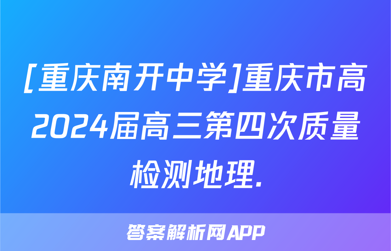 [重庆南开中学]重庆市高2024届高三第四次质量检测地理.正在持续更新,目前2024-2025衡中同卷答案网为大家整理了相关试题及答案,供大家查缺补漏,高效提升成绩。
