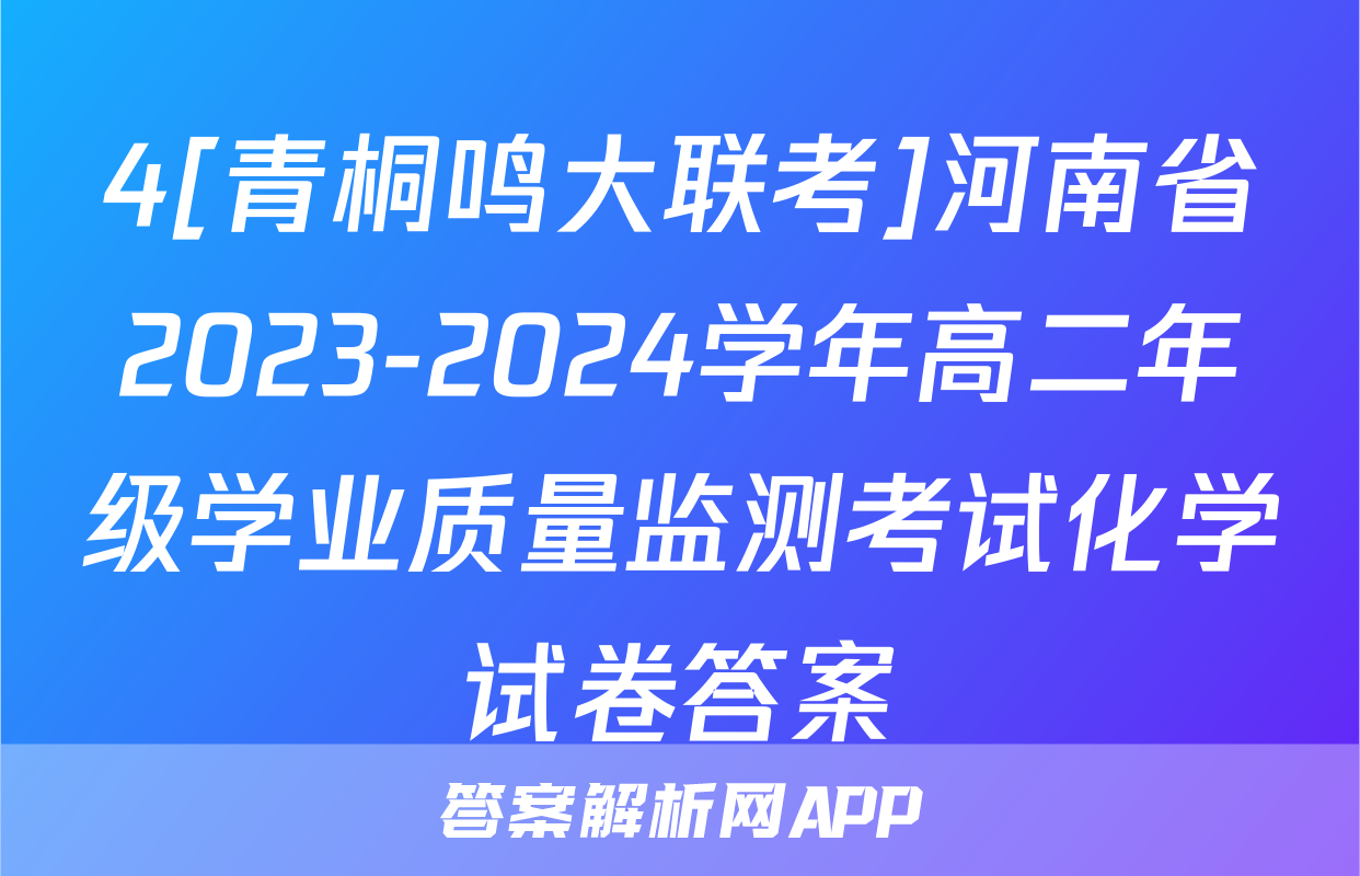 4[青桐鸣大联考]河南省2023-2024学年高二年级学业质量监测考试化学试卷答案正在持续更新,目前2024-2025衡中同卷答案网为大家整理了相关试题及答案,供大家查缺补漏,高效提升成绩。