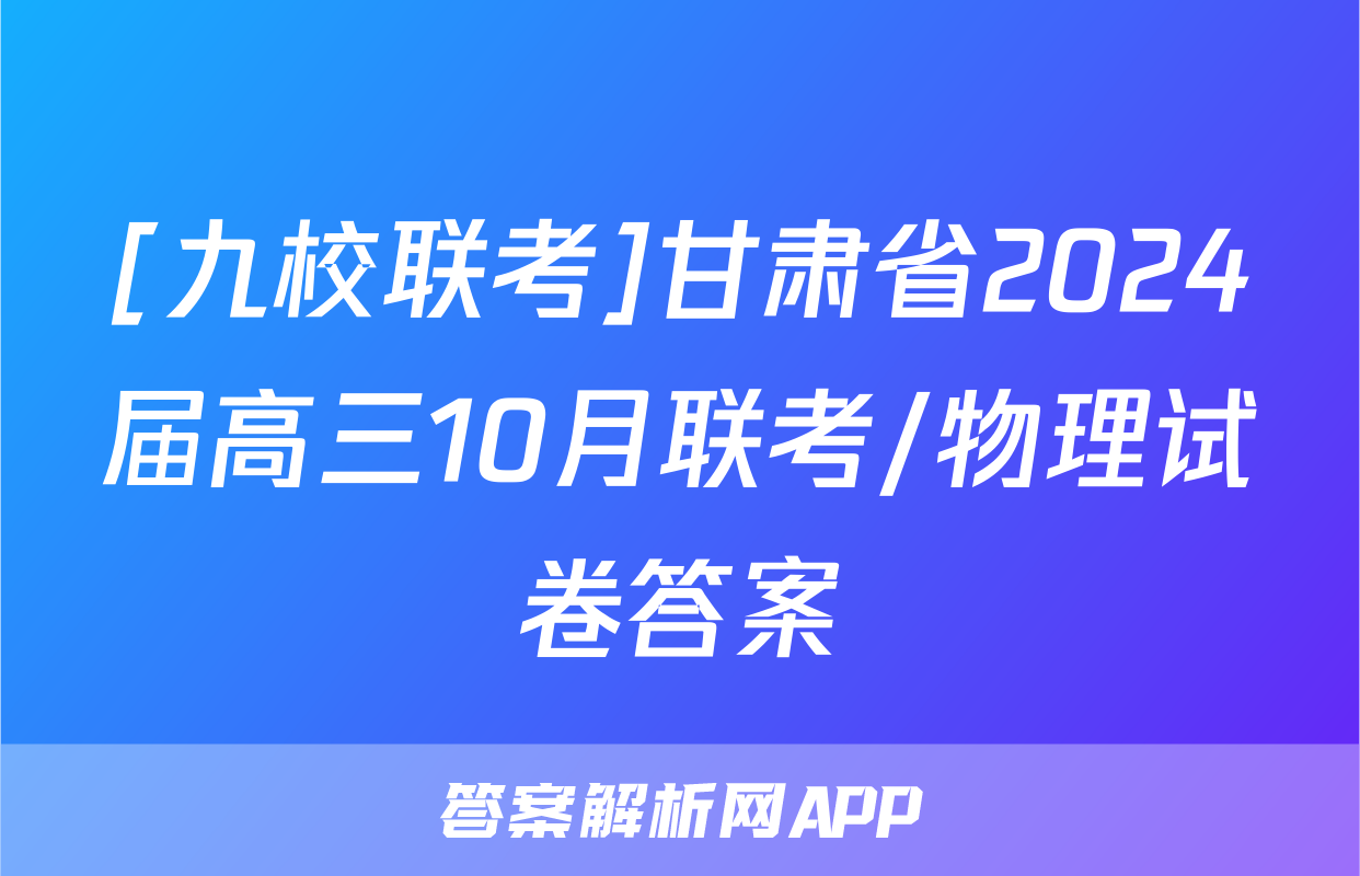 [九校联考]甘肃省2024届高三10月联考/物理试卷答案正在持续更新,目前2024-2025衡中同卷答案网为大家整理了相关试题及答案,供大家查缺补漏,高效提升成绩。