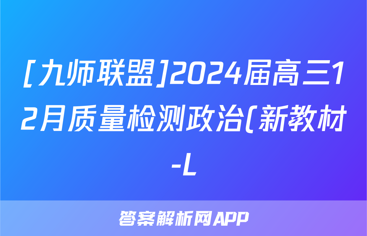 1、九师联盟 2024届高三12月质量检测政治(新教材-L)答案
