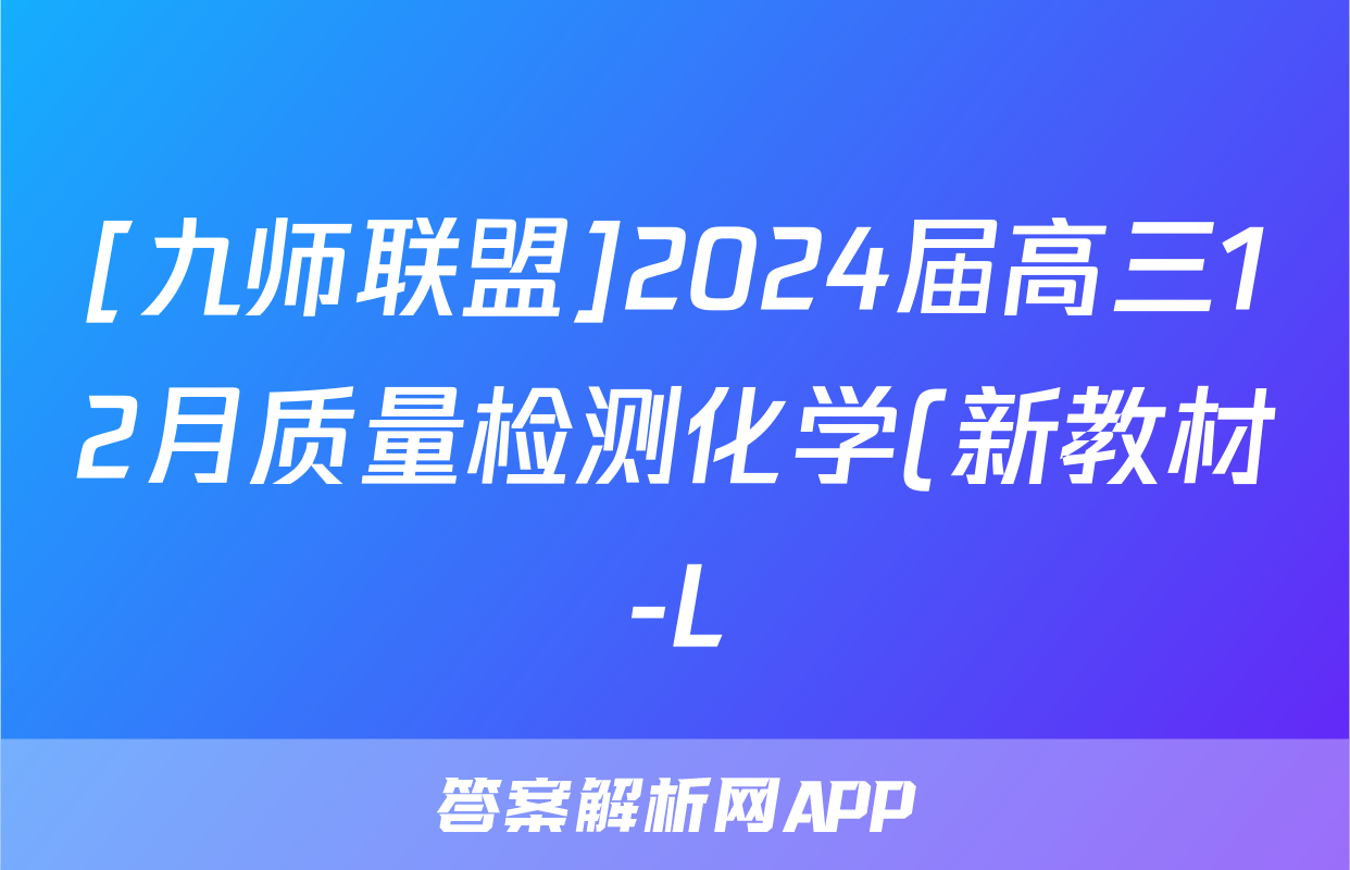 2、九师联盟 2024届高三12月质量检测化学(新教材-L)试题