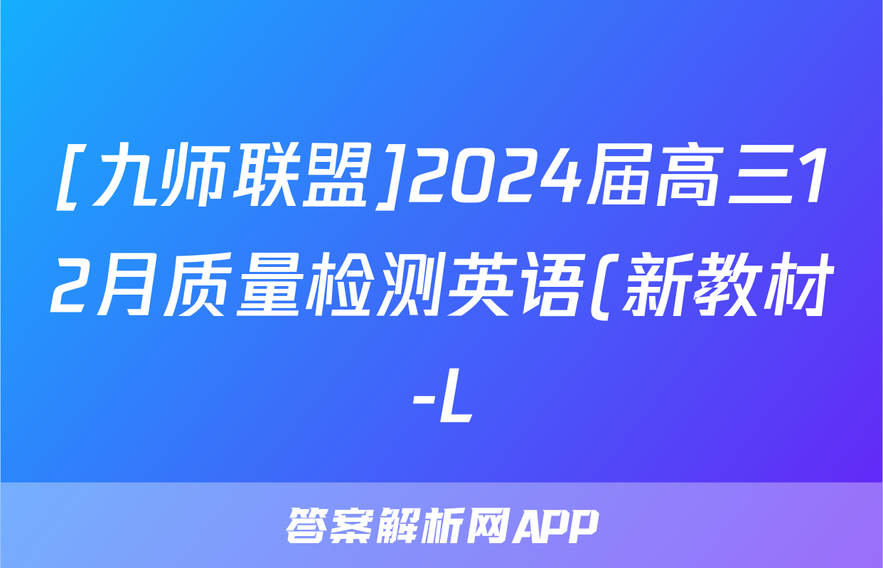 [九师联盟]2024届高三12月质量检测英语(新教材-L)试题正在持续更新,目前2024-2025衡中同卷答案网为大家整理了相关试题及答案,供大家查缺补漏,高效提升成绩。