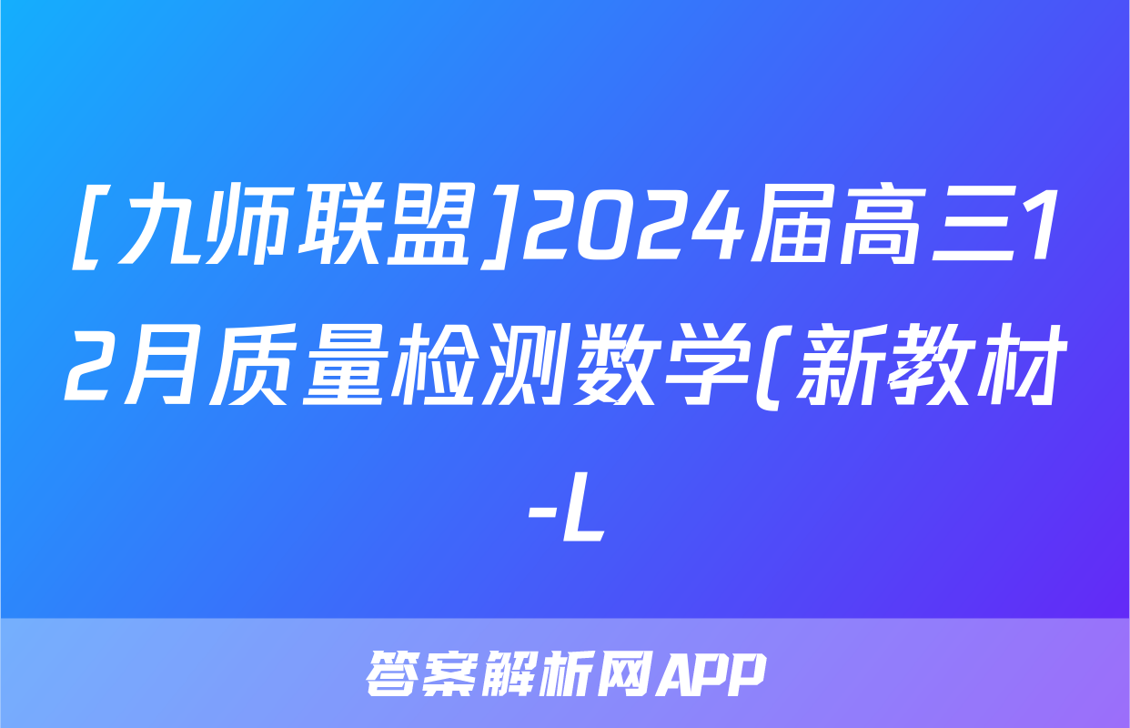 1、九师联盟 2024届高三12月质量检测数学(新教材-L)试题