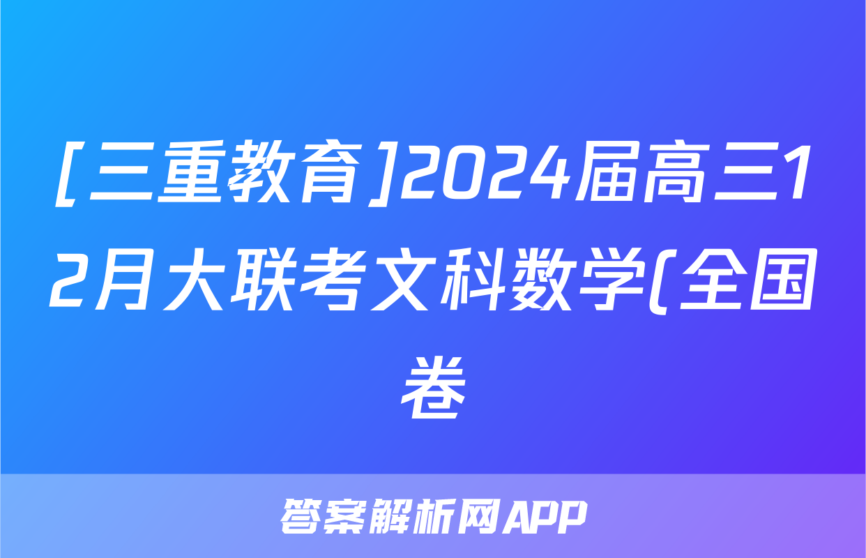 [三重教育]2024届高三12月大联考文科数学(全国卷)试题正在持续更新,目前2024-2025衡中同卷答案网为大家整理了相关试题及答案,供大家查缺补漏,高效提升成绩。