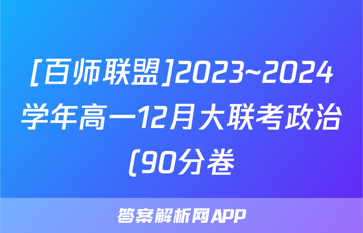 [百师联盟]2023~2024学年高一12月大联考政治(90分卷)试题正在持续更新,目前2024-2025衡中同卷答案网为大家整理了相关试题及答案,供大家查缺补漏,高效提升成绩。
