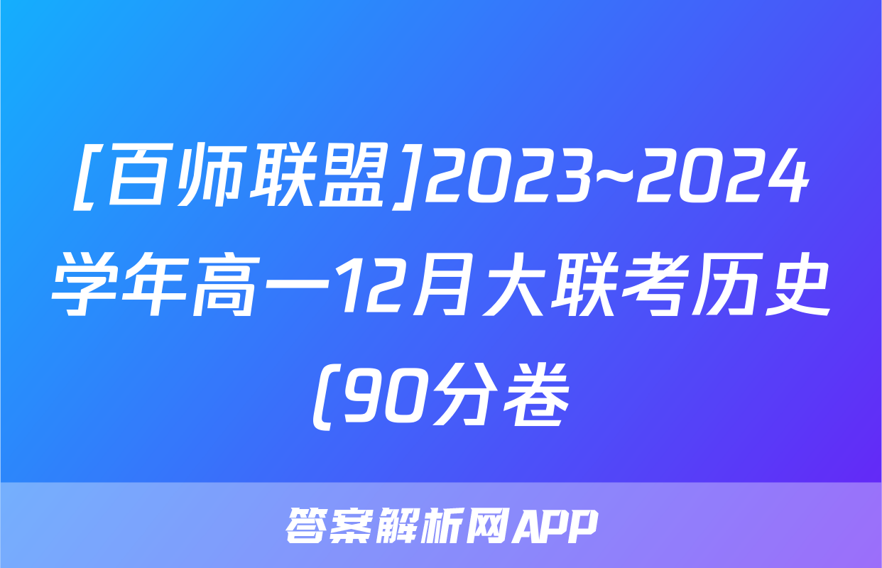 [百师联盟]2023~2024学年高一12月大联考历史(90分卷)试题正在持续更新,目前2024-2025衡中同卷答案网为大家整理了相关试题及答案,供大家查缺补漏,高效提升成绩。