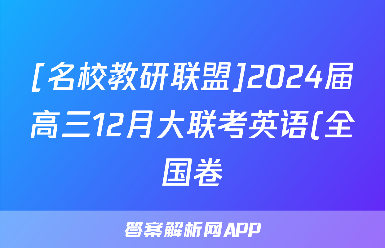 <3、名校教研联盟 2024届高三12月大联考英语(全国卷)试题