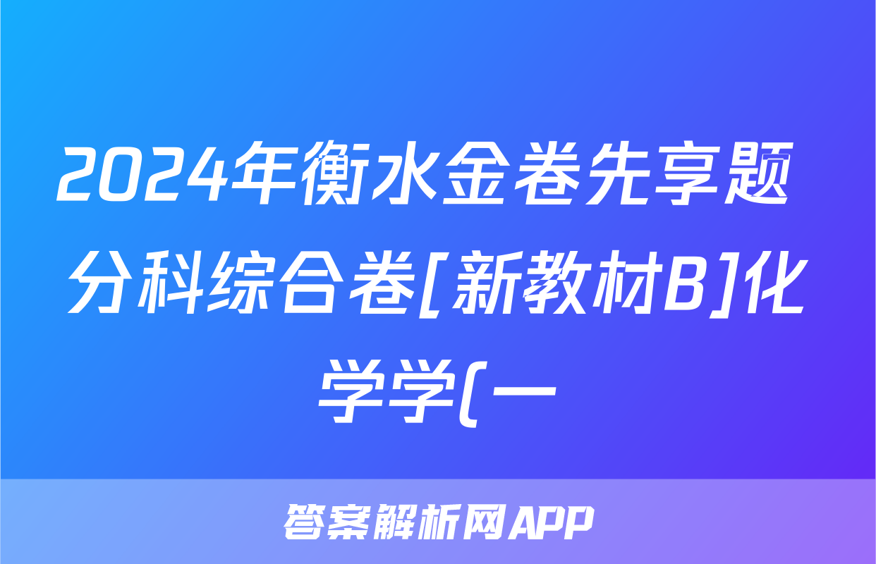 2024年衡水金卷先享题 分科综合卷[新教材B]化学学(一)1试题正在持续更新,目前2024-2025衡中同卷答案网为大家整理了相关试题及答案,供大家查缺补漏,高效提升成绩。