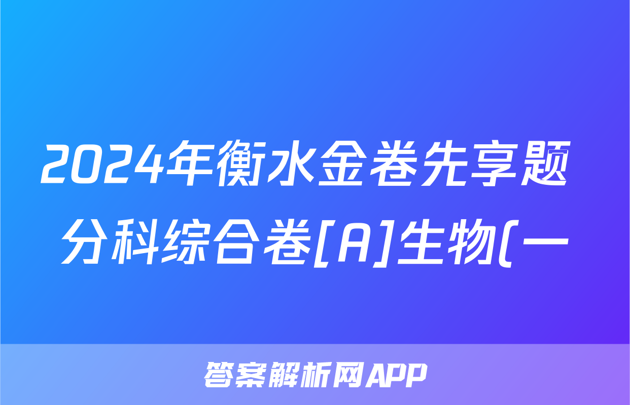 2024年衡水金卷先享题 分科综合卷[A]生物(一)1答案正在持续更新,目前2024-2025衡中同卷答案网为大家整理了相关试题及答案,供大家查缺补漏,高效提升成绩。