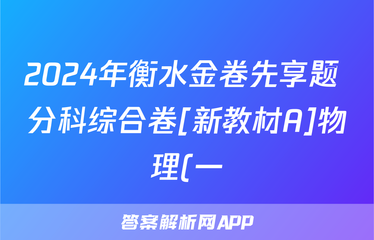 2024年衡水金卷先享题 分科综合卷[新教材A]物理(一)1试题正在持续更新,目前2024-2025衡中同卷答案网为大家整理了相关试题及答案,供大家查缺补漏,高效提升成绩。