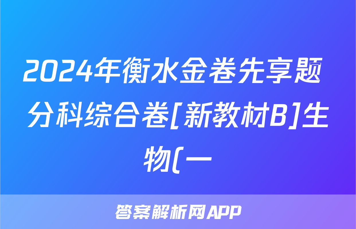 2024年衡水金卷先享题 分科综合卷[新教材B]生物(一)1答案正在持续更新,目前2024-2025衡中同卷答案网为大家整理了相关试题及答案,供大家查缺补漏,高效提升成绩。