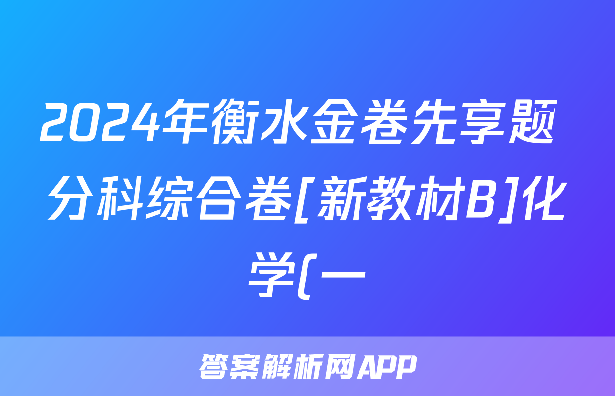 2024年衡水金卷先享题 分科综合卷[新教材B]化学(一)1答案正在持续更新,目前2024-2025衡中同卷答案网为大家整理了相关试题及答案,供大家查缺补漏,高效提升成绩。