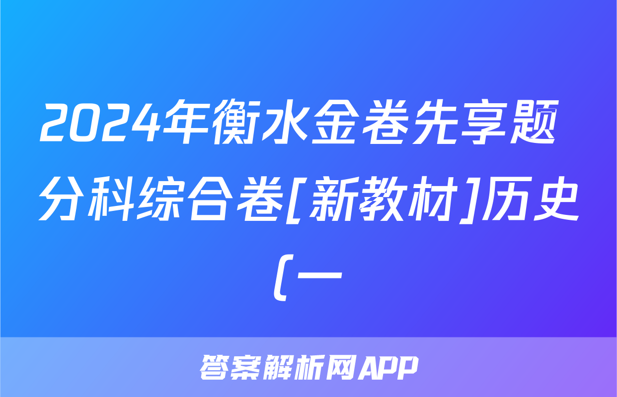 2024年衡水金卷先享题 分科综合卷[新教材]历史(一)1答案正在持续更新,目前2024-2025衡中同卷答案网为大家整理了相关试题及答案,供大家查缺补漏,高效提升成绩。
