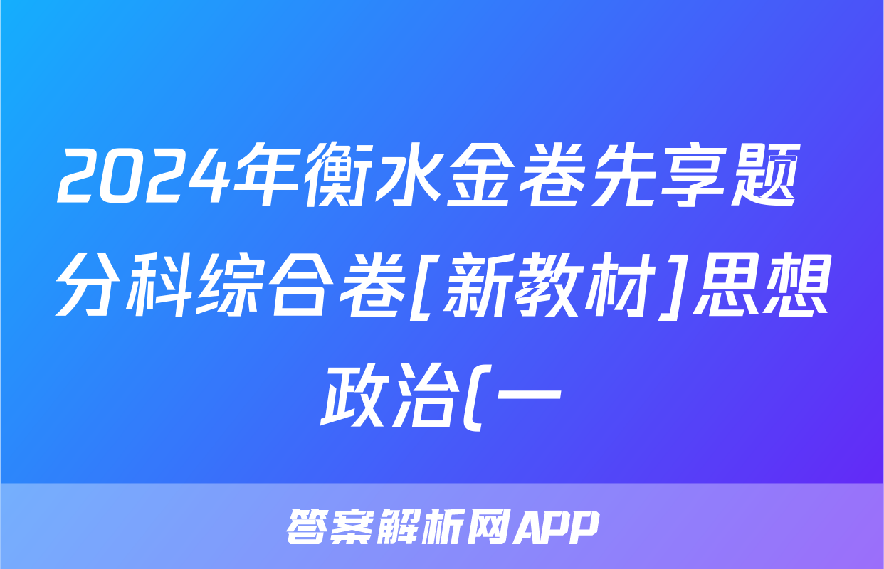 1、衡水金卷先享题分科综合卷2024答案新教材一(政治)试卷答案