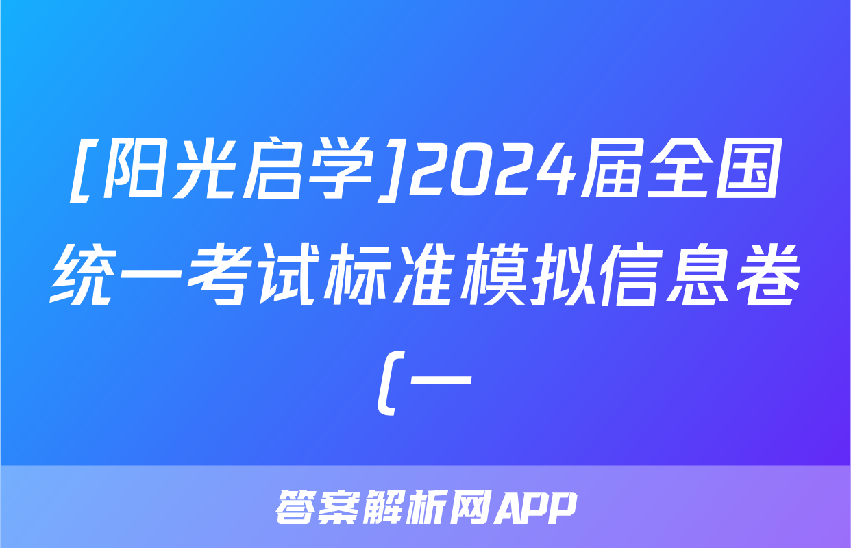 [阳光启学]2024届全国统一考试标准模拟信息卷(一)1理科数学LL试题正在持续更新,目前2024-2025衡中同卷答案网为大家整理了相关试题及答案,供大家查缺补漏,高效提升成绩。