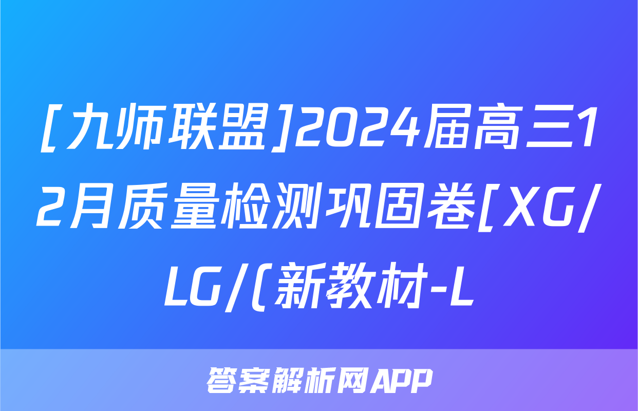 [九师联盟]2024届高三12月质量检测巩固卷[XG/LG/(新教材-L)G]生物LG试题正在持续更新,目前2024-2025衡中同卷答案网为大家整理了相关试题及答案,供大家查缺补漏,高效提升成绩。