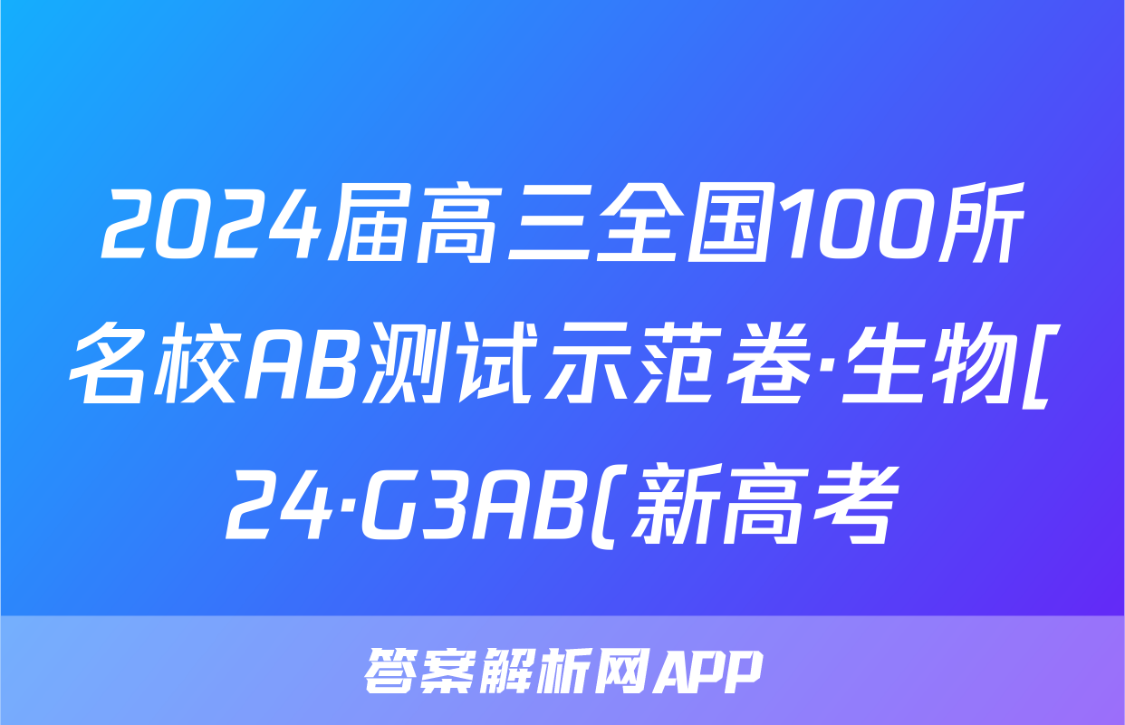 2024届高三全国100所名校AB测试示范卷·生物[24·G3AB(新高考)·生物-R-必考-GX]三试题正在持续更新,目前2024-2025衡中同卷答案网为大家整理了相关试题及答案,供大家查缺补漏,高效提升成绩。