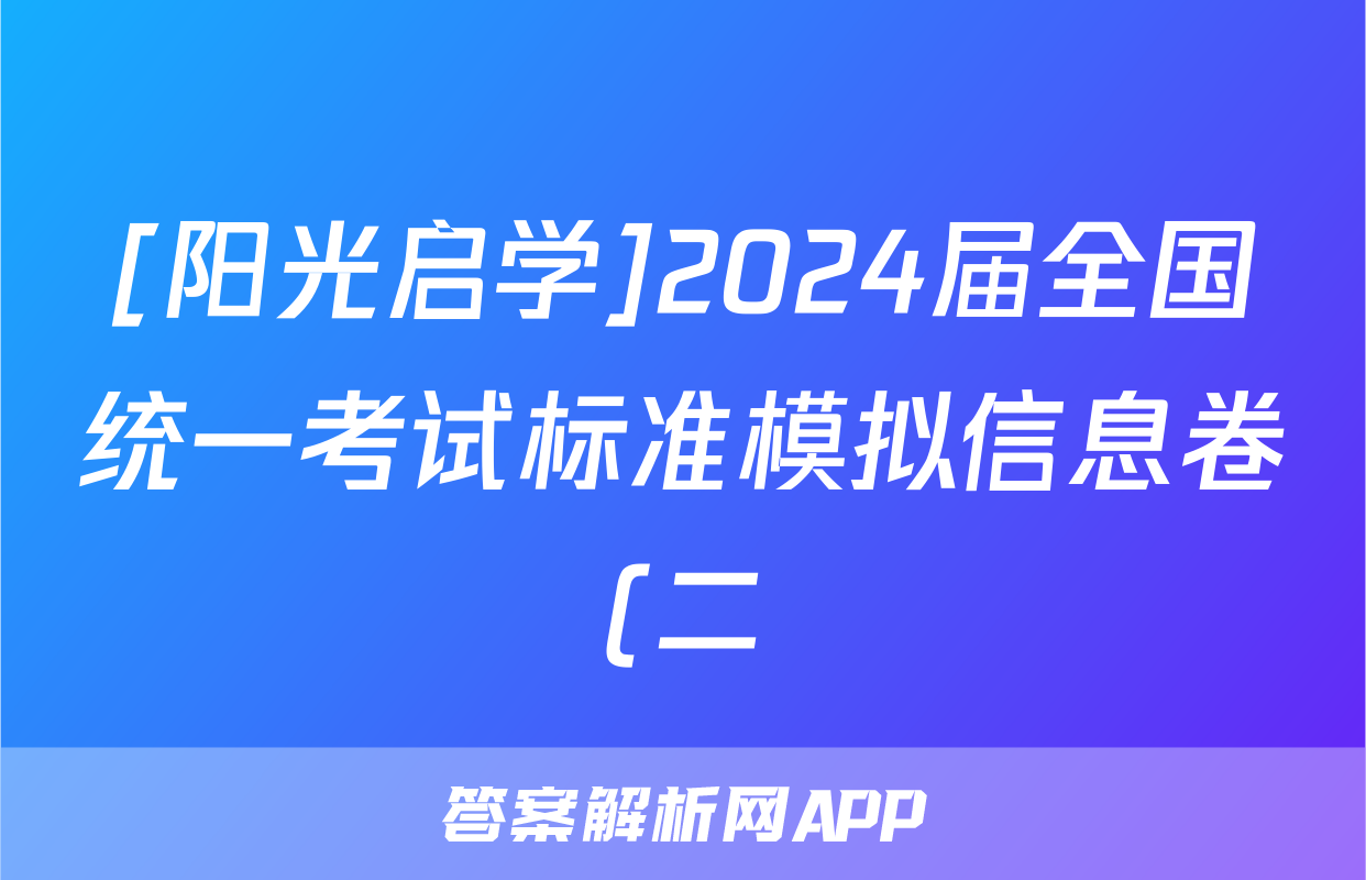 [阳光启学]2024届全国统一考试标准模拟信息卷(二)2理科数学LL答案正在持续更新,目前2024-2025衡中同卷答案网为大家整理了相关试题及答案,供大家查缺补漏,高效提升成绩。