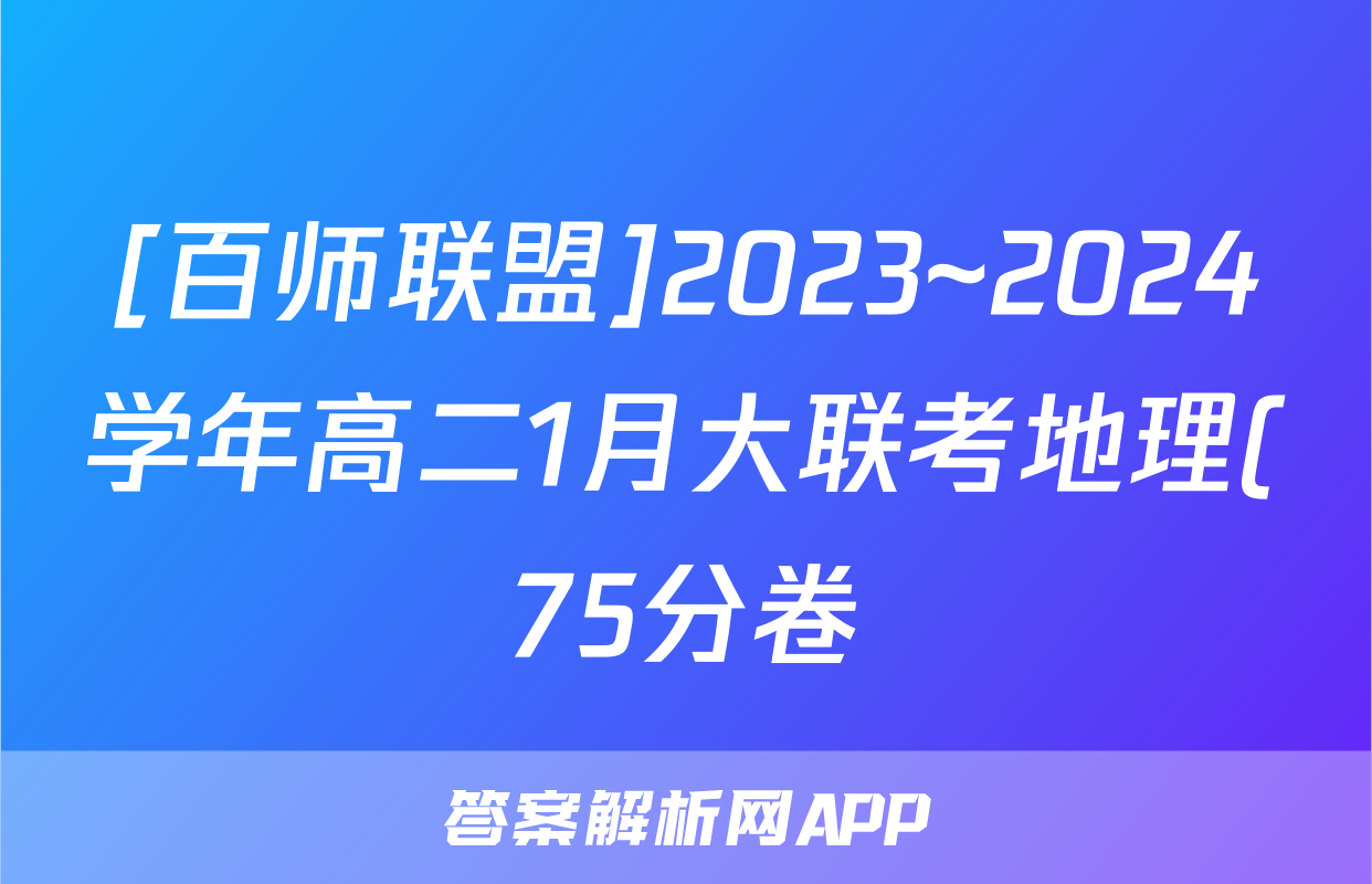 [百师联盟]2023~2024学年高二1月大联考地理(75分卷)答案正在持续更新,目前2024-2025衡中同卷答案网为大家整理了相关试题及答案,供大家查缺补漏,高效提升成绩。