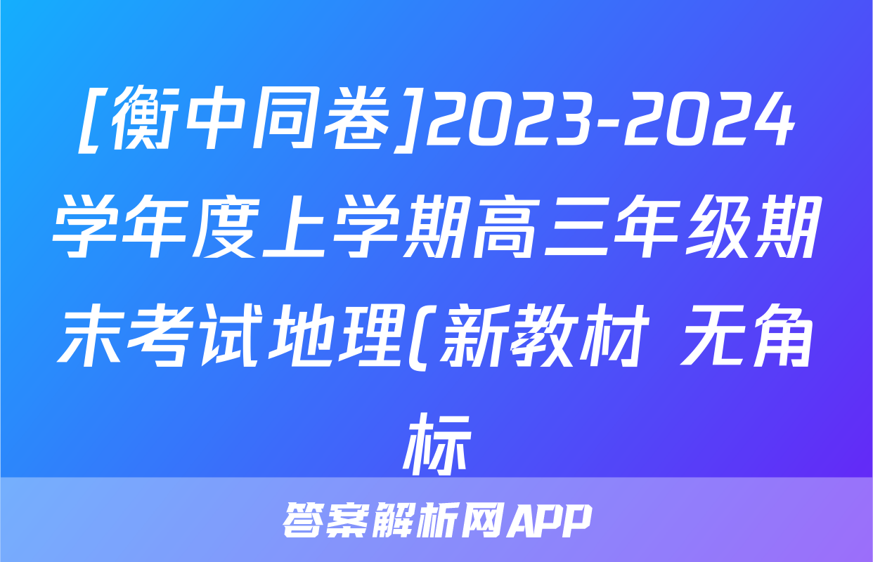 [衡中同卷]2023-2024学年度上学期高三年级期末考试地理(新教材 无角标)答案正在持续更新,目前2024-2025衡中同卷答案网为大家整理了相关试题及答案,供大家查缺补漏,高效提升成绩。