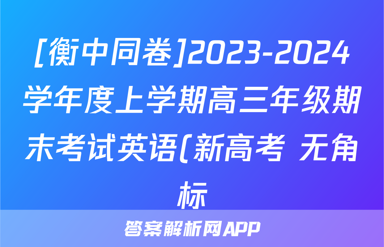 [衡中同卷]2023-2024学年度上学期高三年级期末考试英语(新高考 无角标)答案正在持续更新,目前2024-2025衡中同卷答案网为大家整理了相关试题及答案,供大家查缺补漏,高效提升成绩。