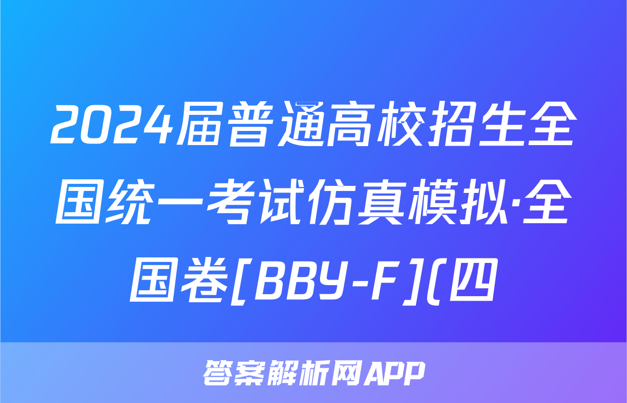 2024届普通高校招生全国统一考试仿真模拟·全国卷[BBY-F](四)4语文试题正在持续更新,目前2024-2025衡中同卷答案网为大家整理了相关试题及答案,供大家查缺补漏,高效提升成绩。