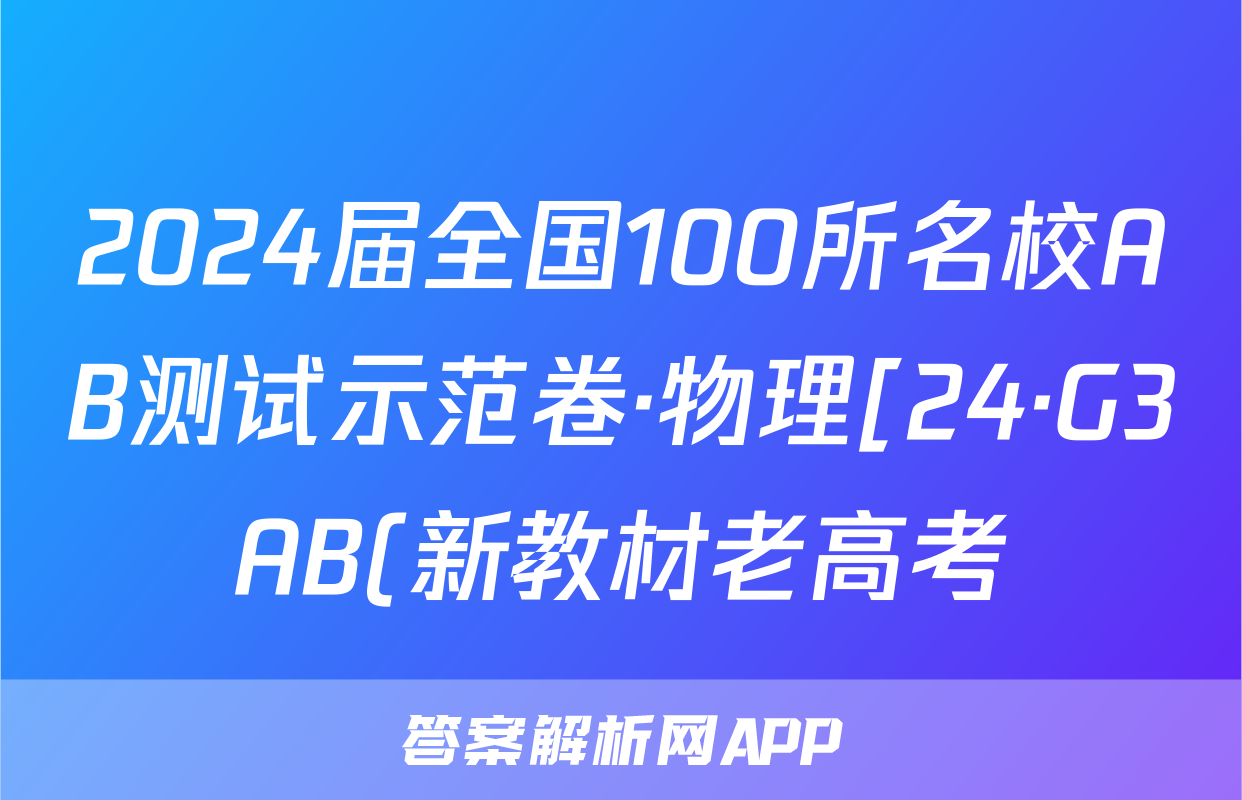 2024届全国100所名校AB测试示范卷·物理[24·G3AB(新教材老高考)·物理-LKB-必考-QG]五试题正在持续更新,目前2024-2025衡中同卷答案网为大家整理了相关试题及答案,供大家查缺补漏,高效提升成绩。