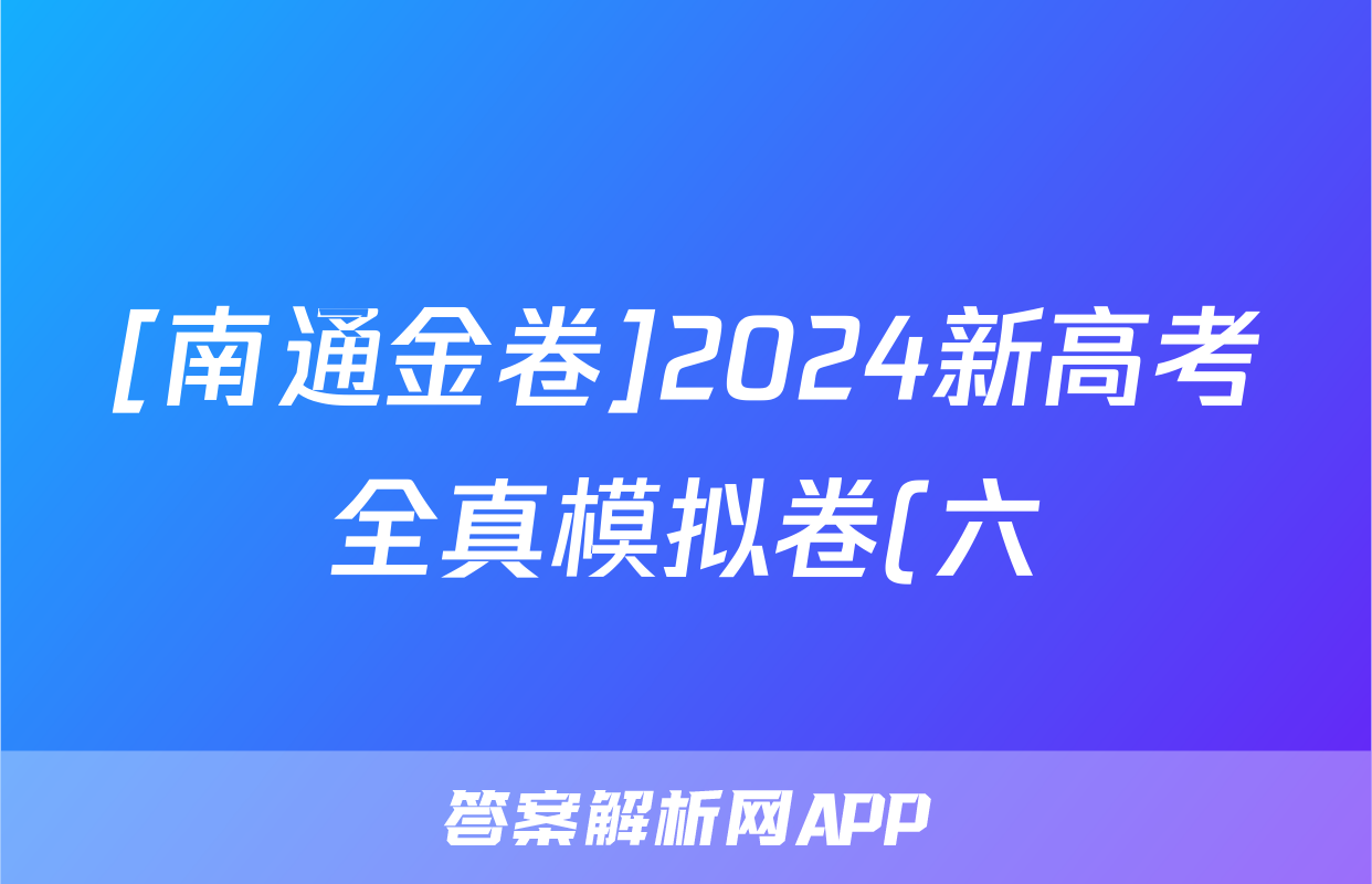 [南通金卷]2024新高考全真模拟卷(六)6化学试题正在持续更新,目前2024-2025衡中同卷答案网为大家整理了相关试题及答案,供大家查缺补漏,高效提升成绩。