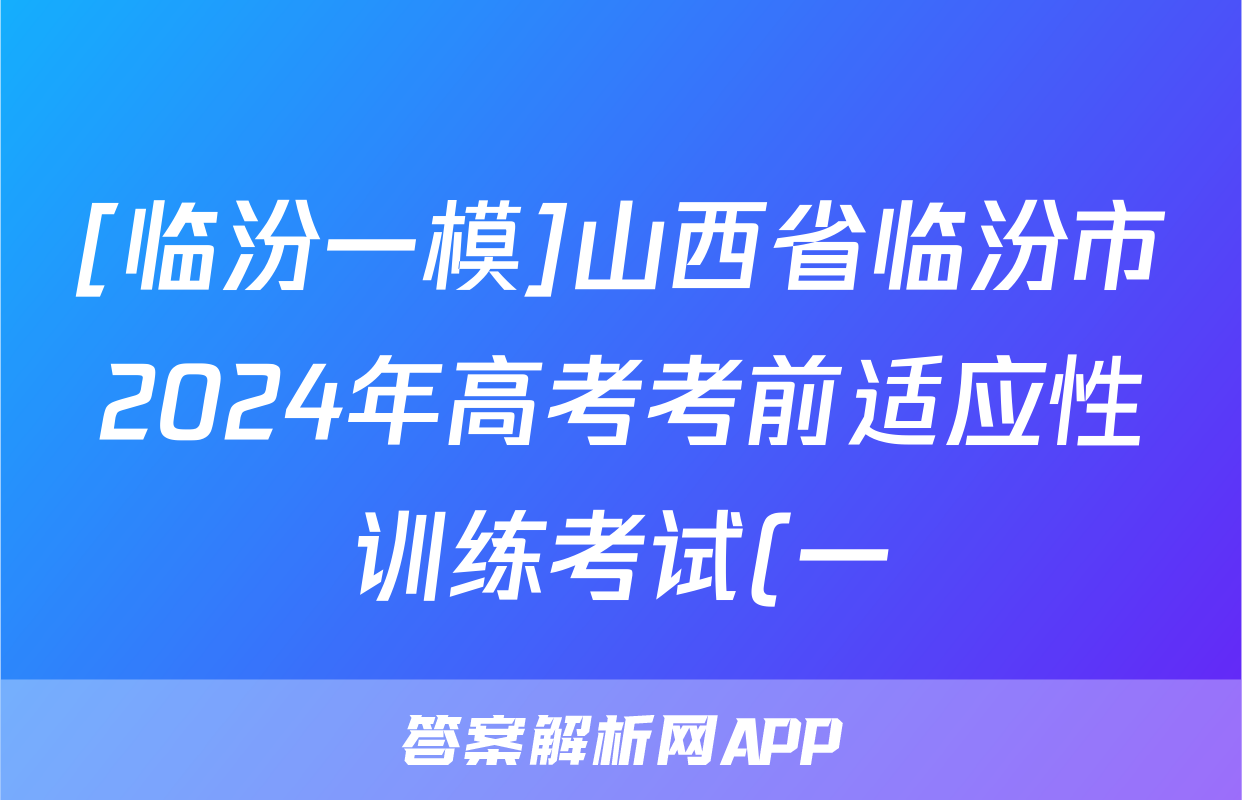 [临汾一模]山西省临汾市2024年高考考前适应性训练考试(一)1语文答案正在持续更新,目前2024-2025衡中同卷答案网为大家整理了相关试题及答案,供大家查缺补漏,高效提升成绩。