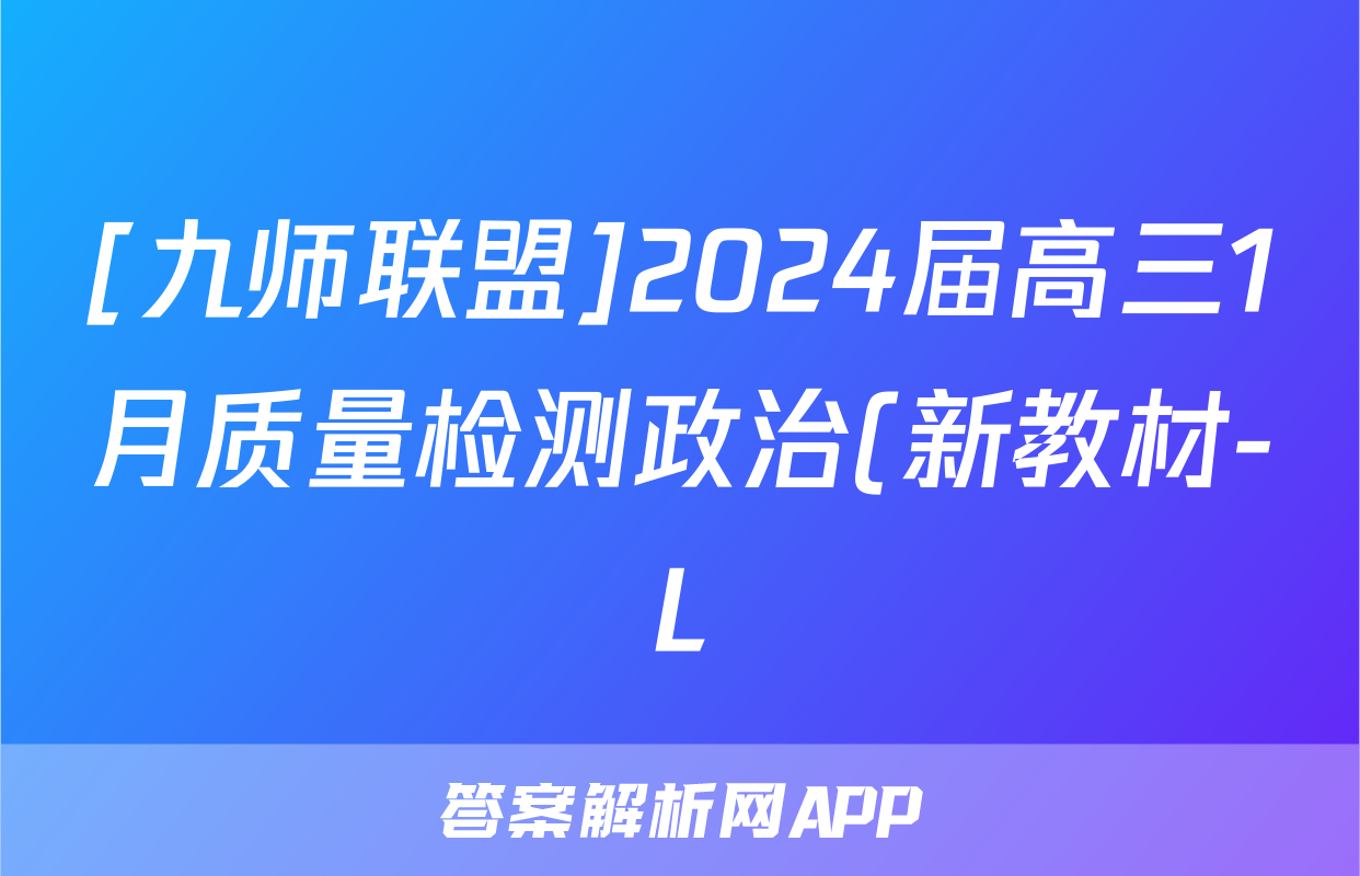 [九师联盟]2024届高三1月质量检测政治(新教材-L)答案正在持续更新,目前2024-2025衡中同卷答案网为大家整理了相关试题及答案,供大家查缺补漏,高效提升成绩。
