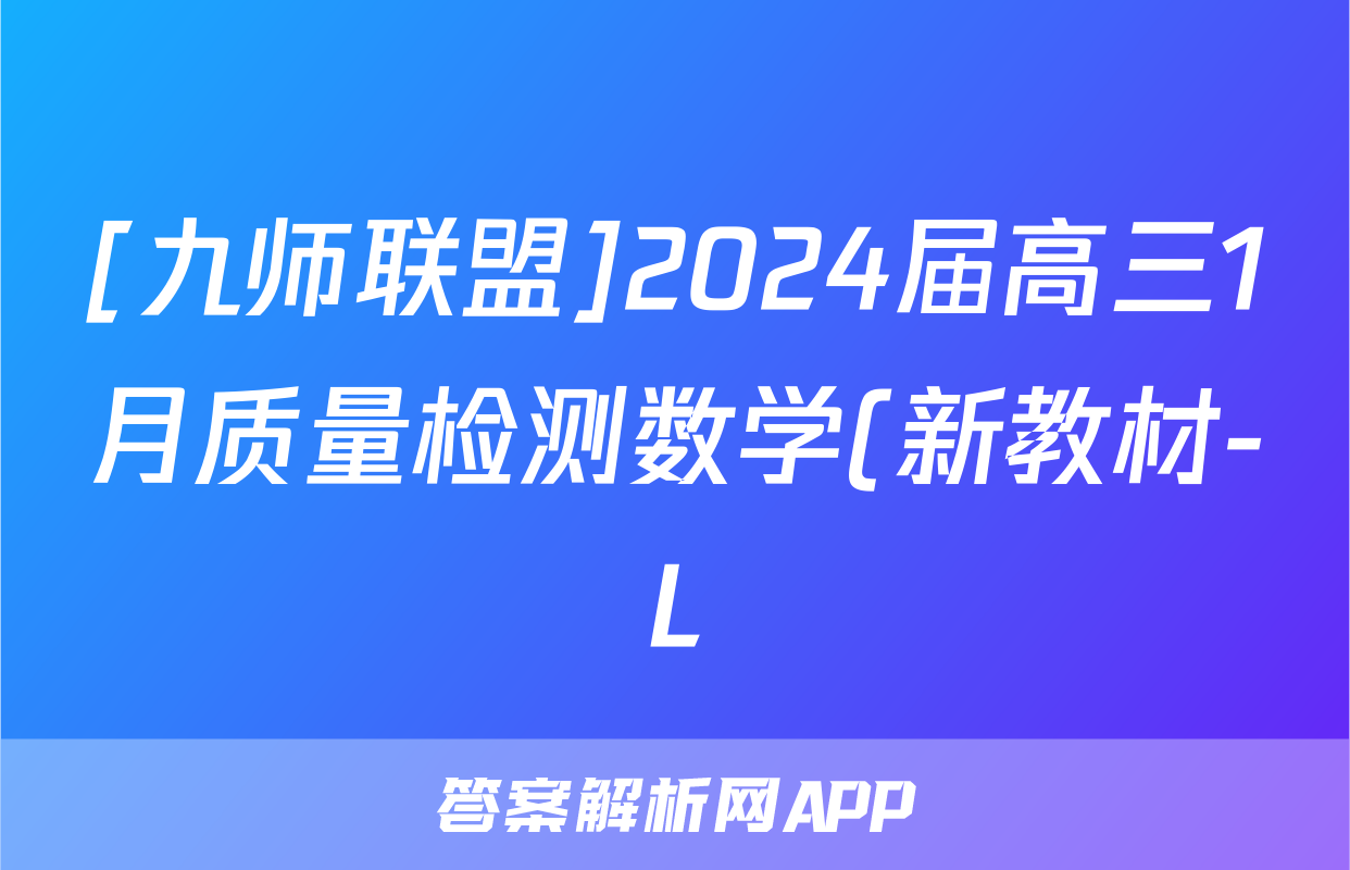 [九师联盟]2024届高三1月质量检测数学(新教材-L)试题正在持续更新,目前2024-2025衡中同卷答案网为大家整理了相关试题及答案,供大家查缺补漏,高效提升成绩。