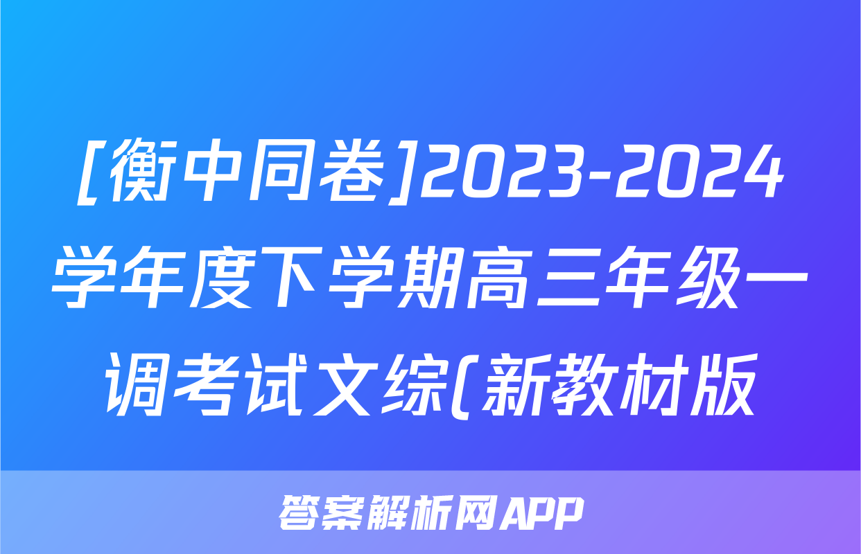 [衡中同卷]2023-2024学年度下学期高三年级一调考试文综(新教材版)答案正在持续更新,目前2024-2025衡中同卷答案网为大家整理了相关试题及答案,供大家查缺补漏,高效提升成绩。