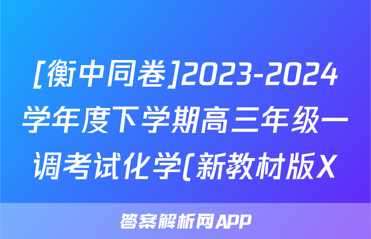 [衡中同卷]2023-2024学年度下学期高三年级一调考试化学(新教材版X)答案正在持续更新,目前2024-2025衡中同卷答案网为大家整理了相关试题及答案,供大家查缺补漏,高效提升成绩。