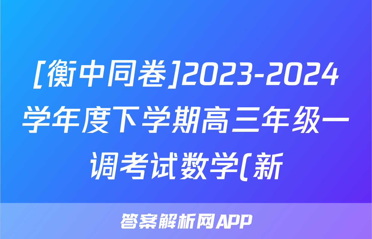 [衡中同卷]2023-2024学年度下学期高三年级一调考试数学(新)(新高考版无角标)答案正在持续更新,目前2024-2025衡中同卷答案网为大家整理了相关试题及答案,供大家查缺补漏,高效提升成绩。