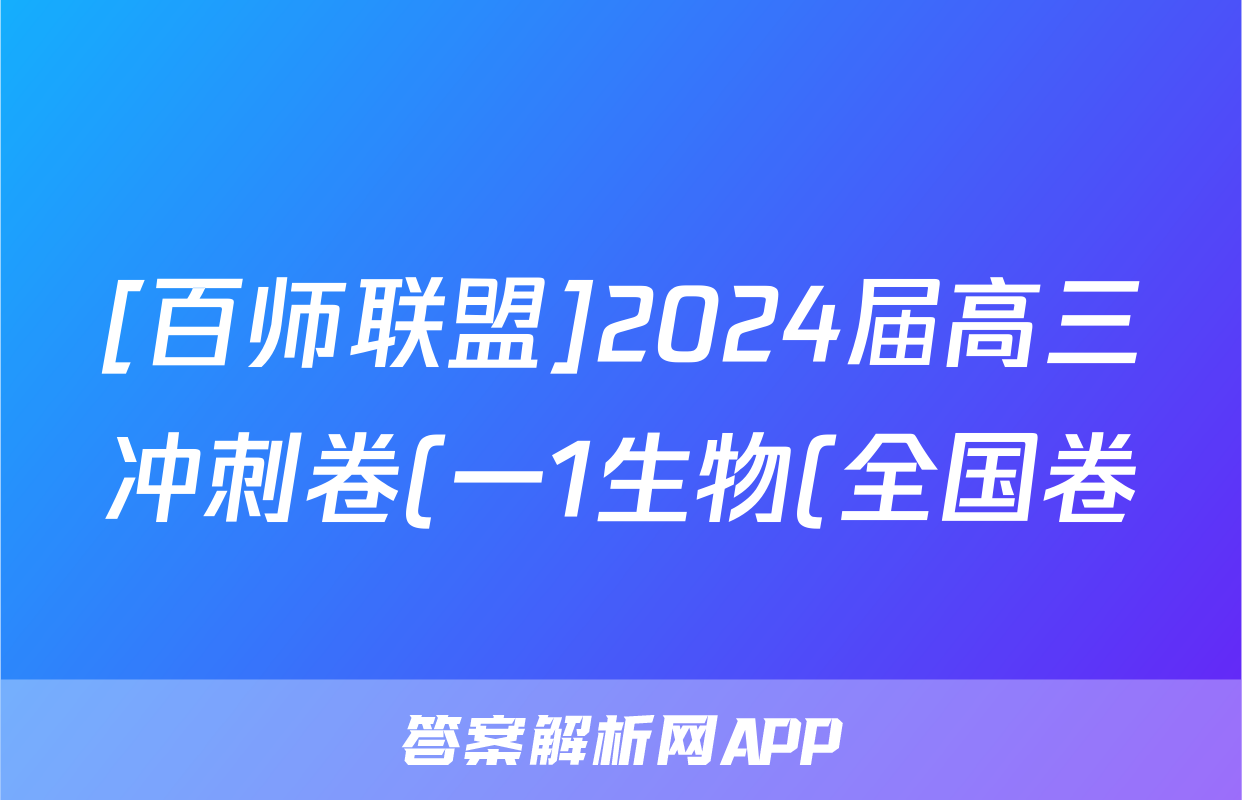 [百师联盟]2024届高三冲刺卷(一1生物(全国卷)试题正在持续更新,目前2024-2025衡中同卷答案网为大家整理了相关试题及答案,供大家查缺补漏,高效提升成绩。
