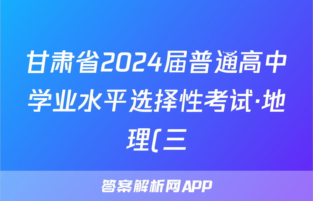 甘肃省2024届普通高中学业水平选择性考试·地理(三)3[24·(新高考)ZX·MNJ·地理·GS]答案正在持续更新,目前2024-2025衡中同卷答案网为大家整理了相关试题及答案,供大家查缺补漏,高效提升成绩。