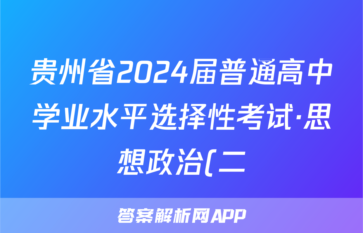 贵州省2024届普通高中学业水平选择性考试·思想政治(二)2[24·(新高考)ZX·MNJ·思想政治·GZ]答案正在持续更新,目前2024-2025衡中同卷答案网为大家整理了相关试题及答案,供大家查缺补漏,高效提升成绩。