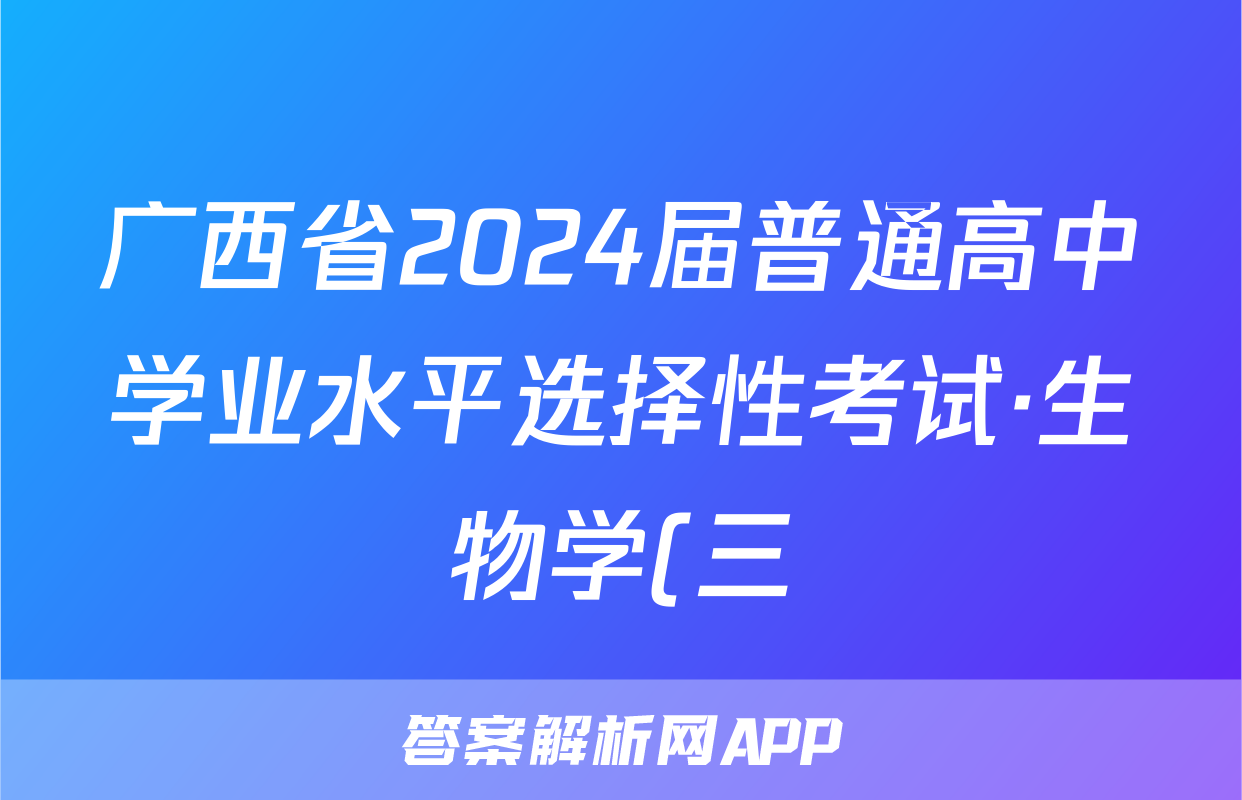 广西省2024届普通高中学业水平选择性考试·生物学(三)3[24·(新高考)ZX·MNJ·生物学·GX]试题正在持续更新,目前2024-2025衡中同卷答案网为大家整理了相关试题及答案,供大家查缺补漏,高效提升成绩。