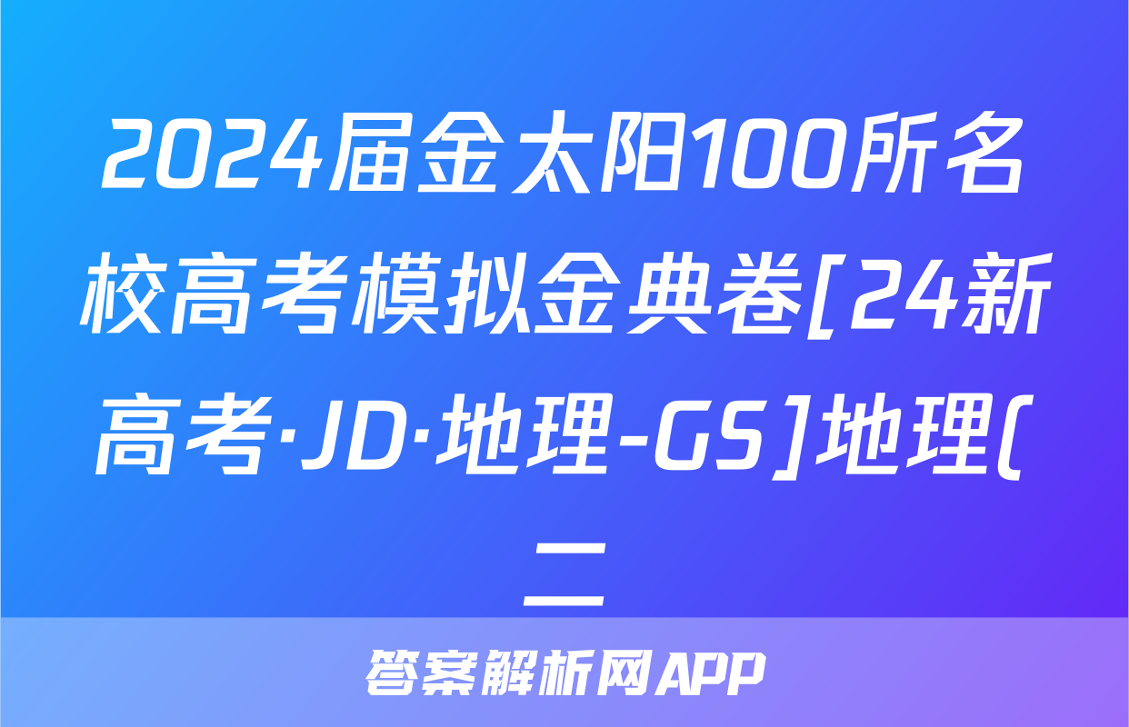 2024届金太阳100所名校高考模拟金典卷[24新高考·JD·地理-GS]地理(二)2答案正在持续更新,目前2024-2025衡中同卷答案网为大家整理了相关试题及答案,供大家查缺补漏,高效提升成绩。