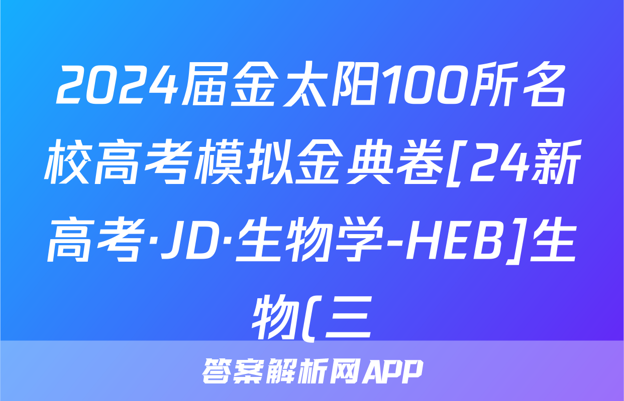 2024届金太阳100所名校高考模拟金典卷[24新高考·JD·生物学-HEB]生物(三)3答案正在持续更新,目前2024-2025衡中同卷答案网为大家整理了相关试题及答案,供大家查缺补漏,高效提升成绩。